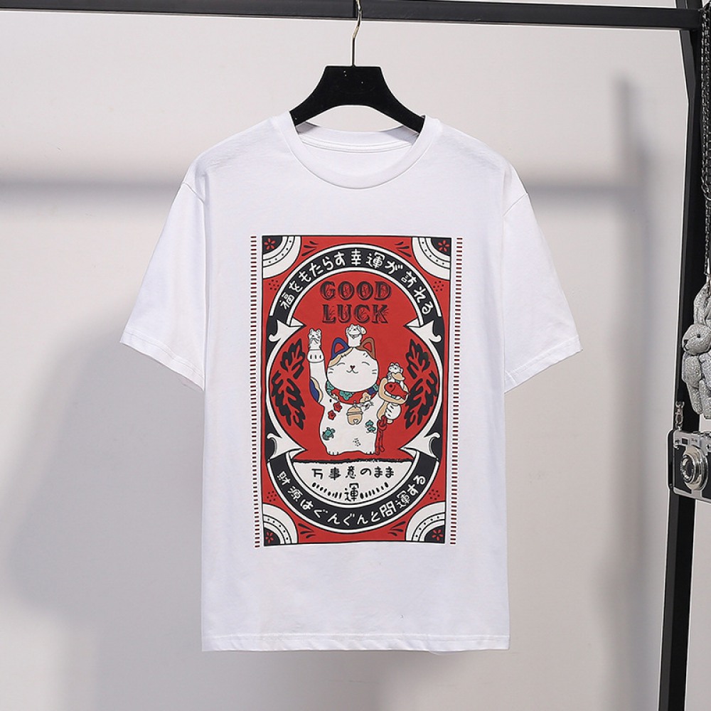 Plus Size Women's Summer Clothes Fat Print Short-Sleeved T-Shirt Female