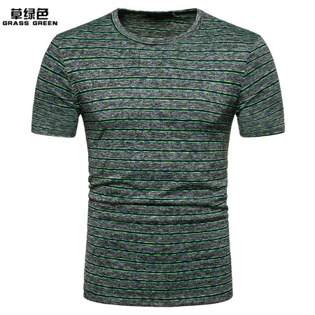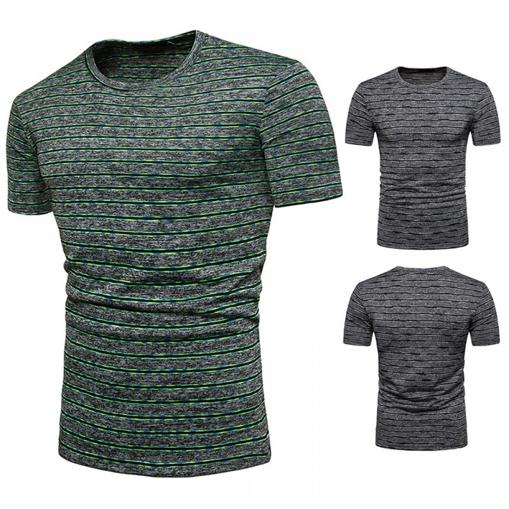 Men's Short-Sleeved T-Shirt Mens Contrast Striped Slim Casual T-Shirt