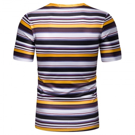 New Summer Men's Short-Sleeved T-Shirt Men's Contrast Striped Slim Casual T-Shirt
