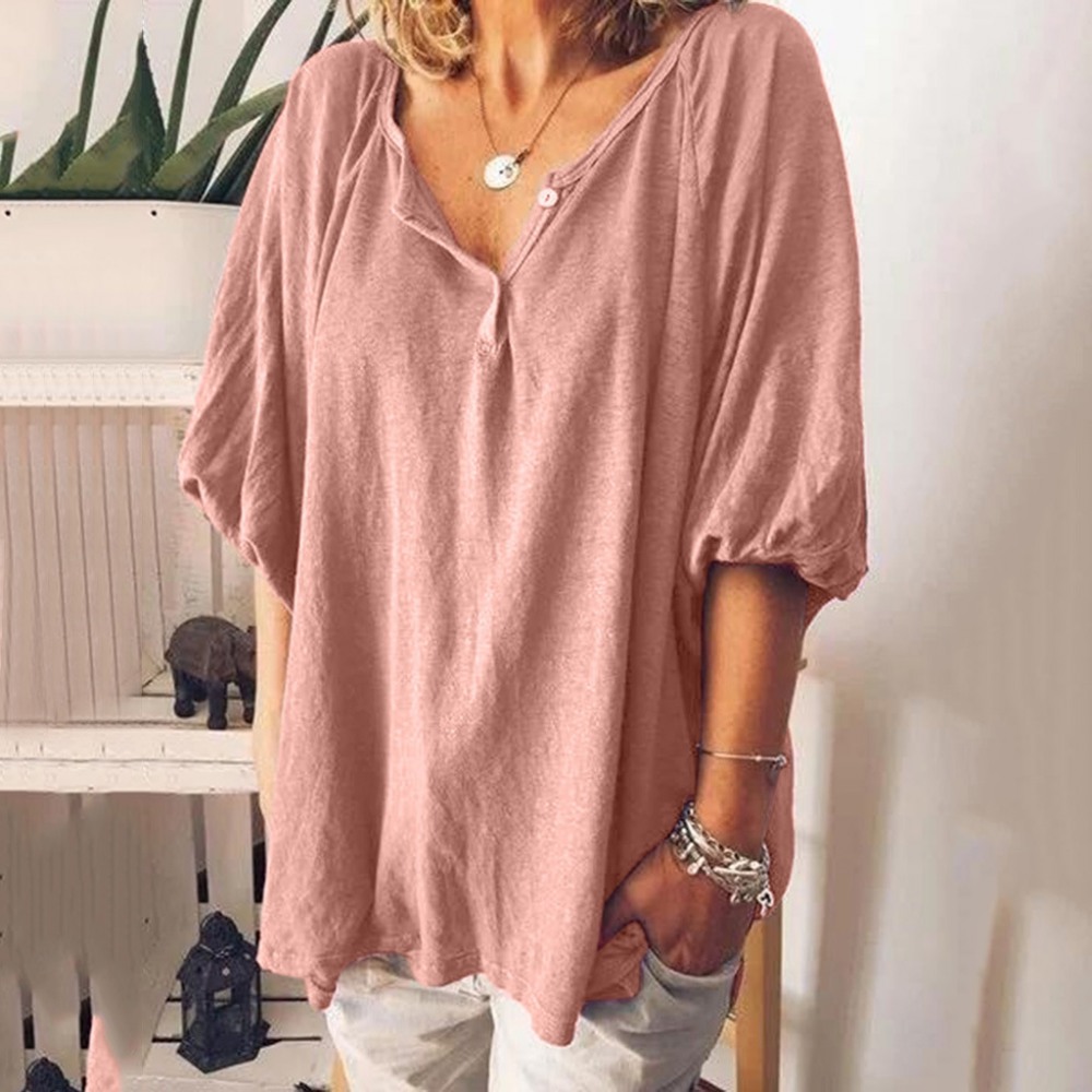 Summer Hot Style Pullover Neckline Two Button T-Shirt
