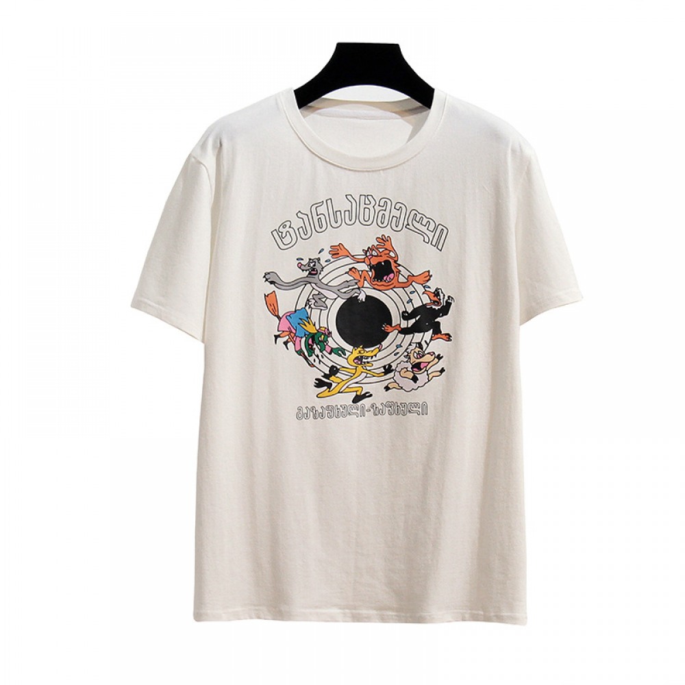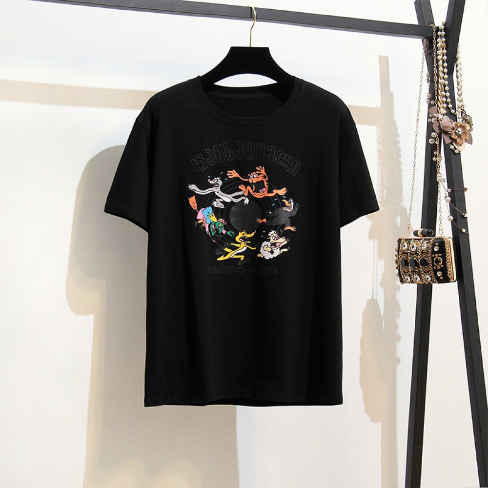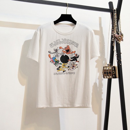 Plus Size Women's Summer Clothes Fat Print Short-Sleeved T-Shirt Female